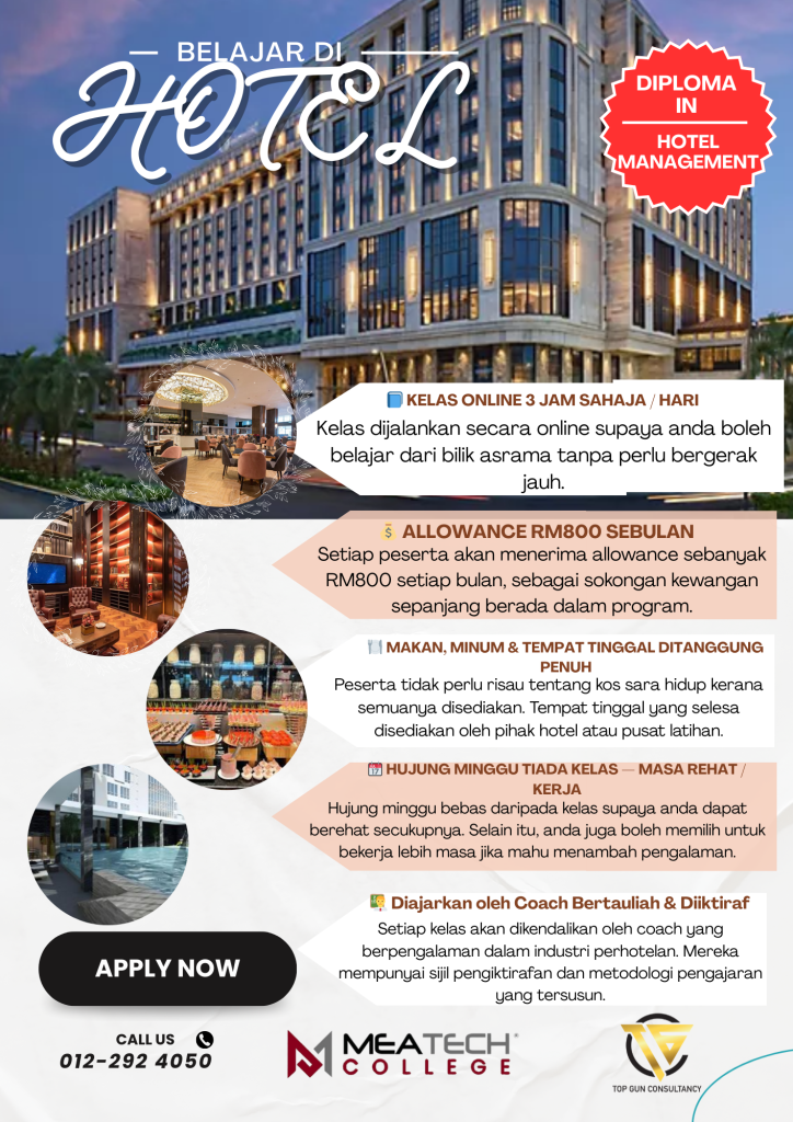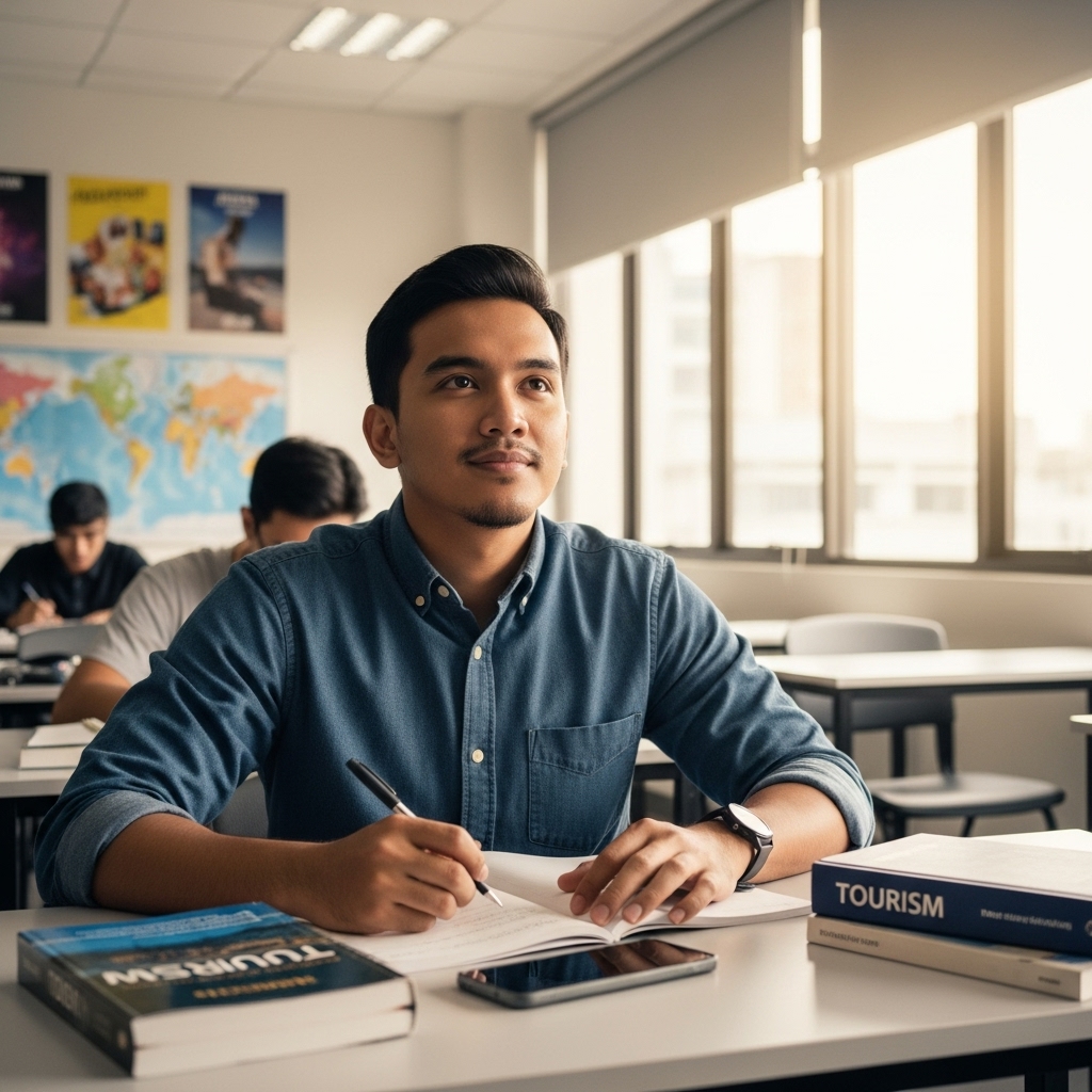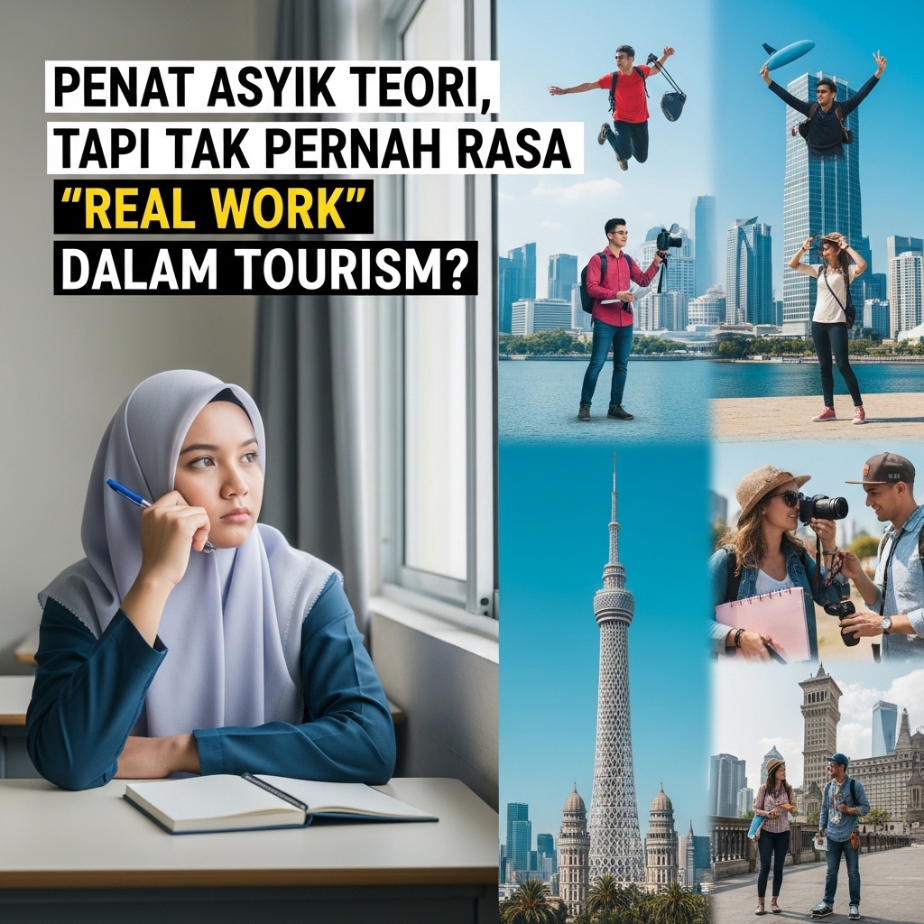 Anda layak mendapat kerjaya yang lebih daripada hanya duduk di pejabat. Industri pelancongan adalah dinamik dan memerlukan pengalaman praktikal, bukan hanya teori. Kami menawarkan diploma yang mengisi jurang ini, memastikan anda terus bekerja sebaik sahaja tamat pengajian